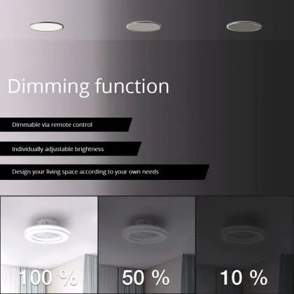 Dank seines flüsterleisen Motors sorgt der Brilliant Mondello Ventilator Plastik Weiß 23W 3100lm - 827-865 CCT | 420mm - Fernsteuerung Dimmbar für angenehme Luftbewegung ohne störende Geräuschkulisse – ideal in Räumen, in denen Ruhe gefragt ist, etwa im Schlafzimmer oder im Home-Office.