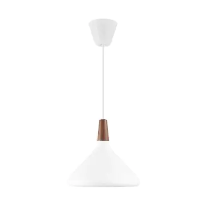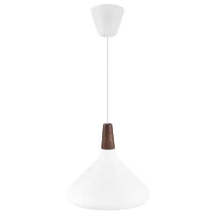 Die Nordlux Pendelleuchte aus der Modellreihe Nori zeichnet sich durch ein modernes Design und einen schicken Materialmix aus. Der Lampenschirm besteht aus Metall. Das Markenzeichen der Modellserie ist die Holzspitze in geöltem Nussbaum. Hinweis: Die Leuchte kommt ohne Leuchtmittel daher - passende E27 LED-Lampen finden Sie jedoch in unserem Shop.