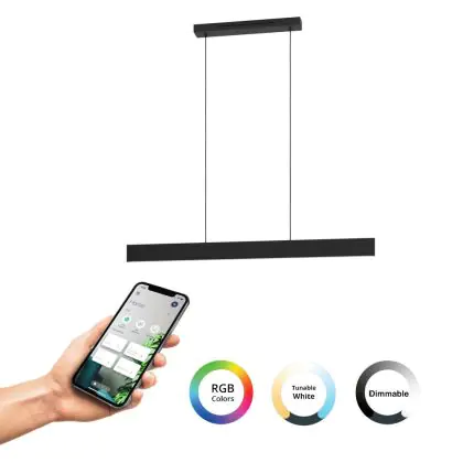 Die Eglo Connect.Z Smart Pendelleuchte Andreas-Z Stahl Schwarz 38W 4600lm - 827-865 Abstimmbares Weiß + RGB | Dimmbar sorgt für eine angenehme Ausleuchtung und punktet durch modernes Design. Diese Leuchte ist speziell zur Montage an der Decke vorgesehen.
