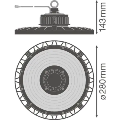 Die LED-Hallenleuchte hat einen niedrigen Energieverbrauch von nur 93 Watt und ersetzt somit herkömmliche Deckenleuchten mit 200 Watt. Aufgrund der höheren Effizienz sparen Sie rund 55 % Energiekosten ein.