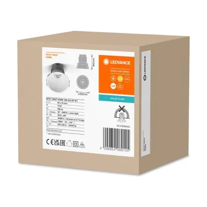 Aufgrund des geringen Energieverbrauchs von nur 10W sparen Sie mit dem LED-Einbaustrahler von Ledvance bis zu 80 % Ihrer Energie - sowie Instandhaltungskosten gegenüber einem herkömmlichen Halogenstrahler.