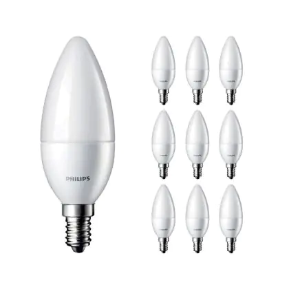 Die Mehrfachpackung 10x Philips Corepro LED Kerze E14 Matt 5W 470lm - 827 Extra Warmweiß | Ersatz für 40W ist eine effiziente E14 LED-Lampe und der perfekte Ersatz für Ihre konventionellen 40W Lampen mit E14-Sockel. Zudem strahlt sie Licht in der Farbtemperatur 2700K - Extra Warmweiß aus und punktet durch eine lange Lebensdauer.