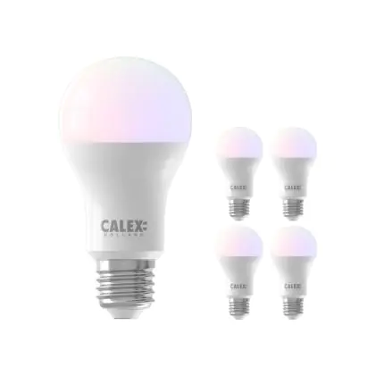 Beschreibung Mehrfachpackung 5x Calex Smart Tuya Wifi E27 Birne 8.5W 806lm - 822-840 Abstimmbares Weiß | RGBW - Dimmbar - Ersatz für 60W