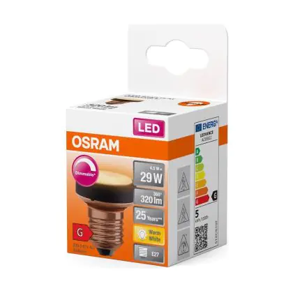Die Osram LED Eben Lamp LED E27 Special Matt 45W 320lm - 827 Extra Warmweiß | Dimmbar - Ersatz Für 40W ist eine effiziente E27 LED-Lampe und der perfekte Ersatz für Ihre konventionellen 40W Lampen mit E27-Sockel. Zudem strahlt sie Licht in der Farbtemperatur 2700K - Extra Warmweiß aus und punktet durch eine lange Lebensdauer.