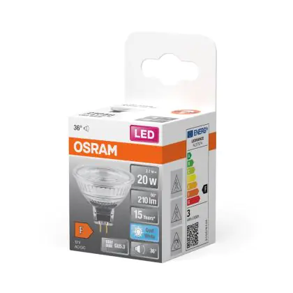 Die Osram Led Star LED GU5.3 Spot Klar 2.6W 210lm - 840 Kaltweiß ist eine effiziente GU5.3 LED-Lampe und der perfekte Ersatz für Ihre konventionelle Halogenlampe mit 20W und einem GU5.3-Sockel, bei dem die beiden Stifte einen Abstand von 5,3 mm zueinander haben. Die Abkürzung MR16 zeigt Ihnen, dass der Reflektor einen Durchmesser von 5 cm hat. Zudem strahlt das Produkt Licht in der Farbtemperatur 4000K - Kaltweiß aus und punktet durch eine lange Lebensdauer.