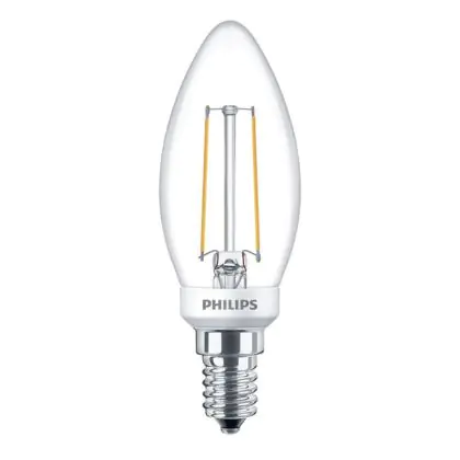 Die Philips Classic LEDcandle E14 ist eine LED-Lampe, die besonders effizient im Verbrauch ist. Sie verfügt über eine lange Lebensdauer und strahlt Licht in der Farbtemperatur extra Warmweiß aus. Sie bietet Ersatz für herkömmliche Leuchtmittel mit einem E14-Sockel und spart bis zu 90% an Energie ein. Darüber hinaus punktet sie durch ein ansprechendes Design und einen Leuchtkörper in Kerzenform.